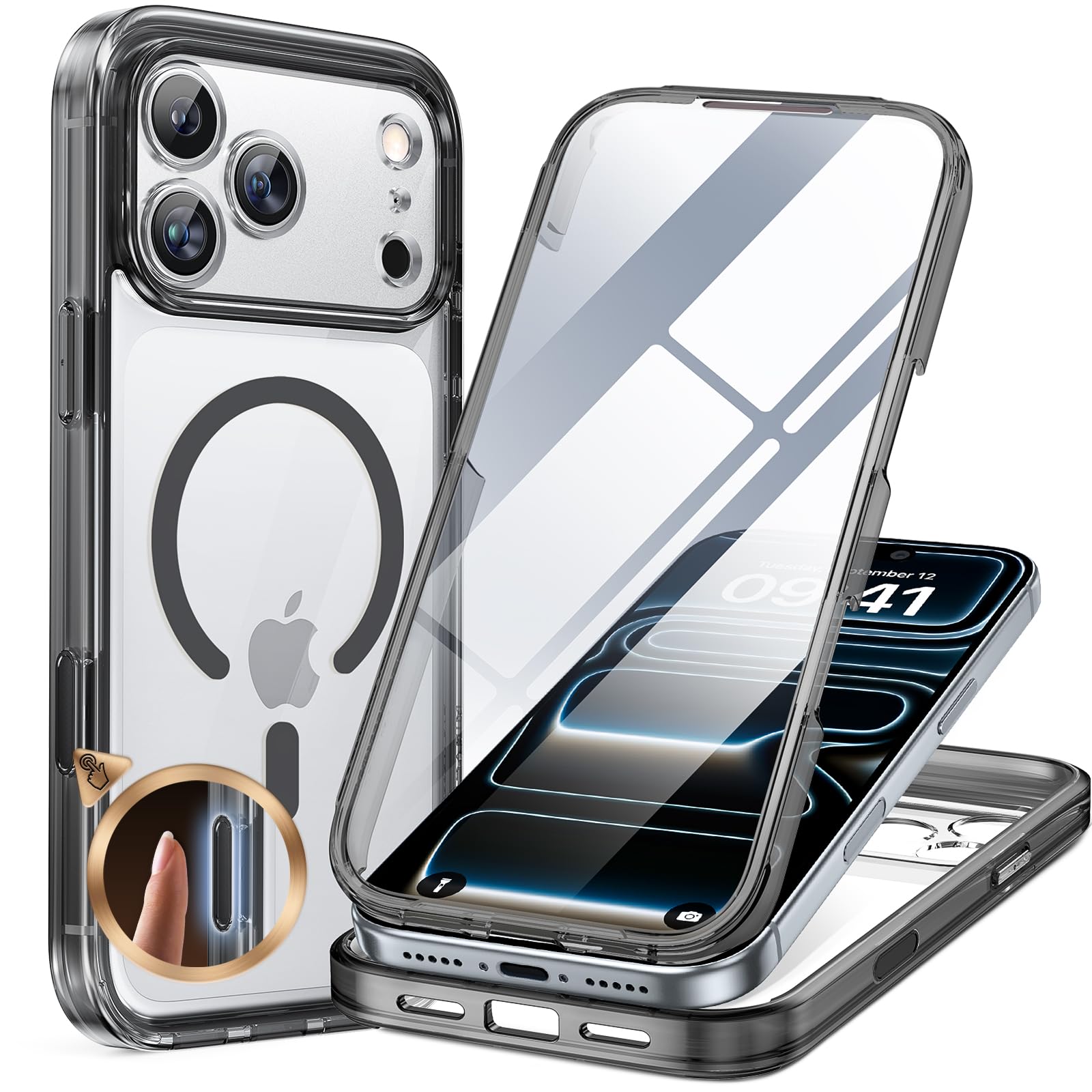 Miracase for iPhone 17 Pro Max Case 6.9" Full-Body Phone Case with Built-in Glass Screen Protector& Full Camera Protector,[Magnetic with MagSafe] Drop Proof 17 ProMax Cover, Clear Black