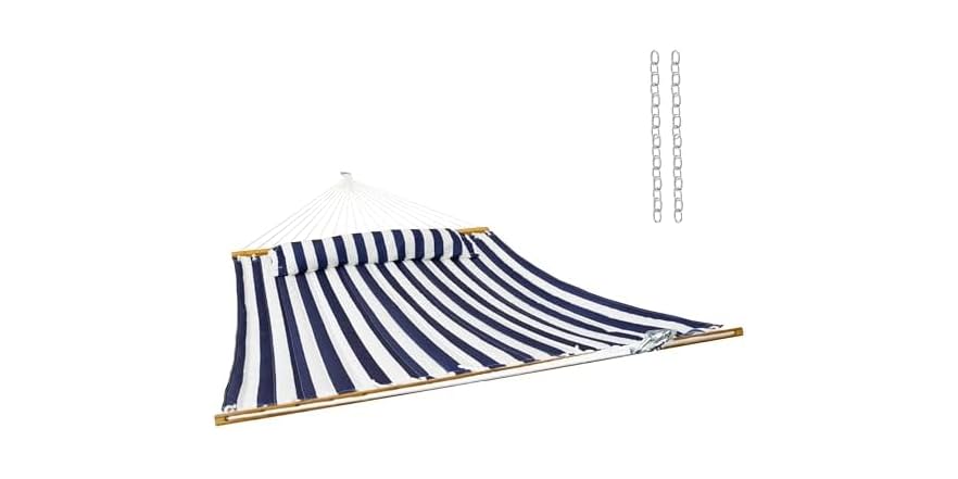 Sunnydaze Extra Large Quilted Hammock with Spreader Bars Blue and White Stripe