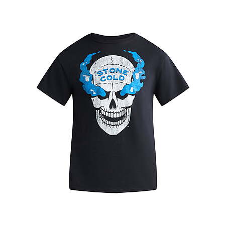 WWE Men's Stone Cold Blue Smoke Skull Graphic T-Shirt (Black) $9.55