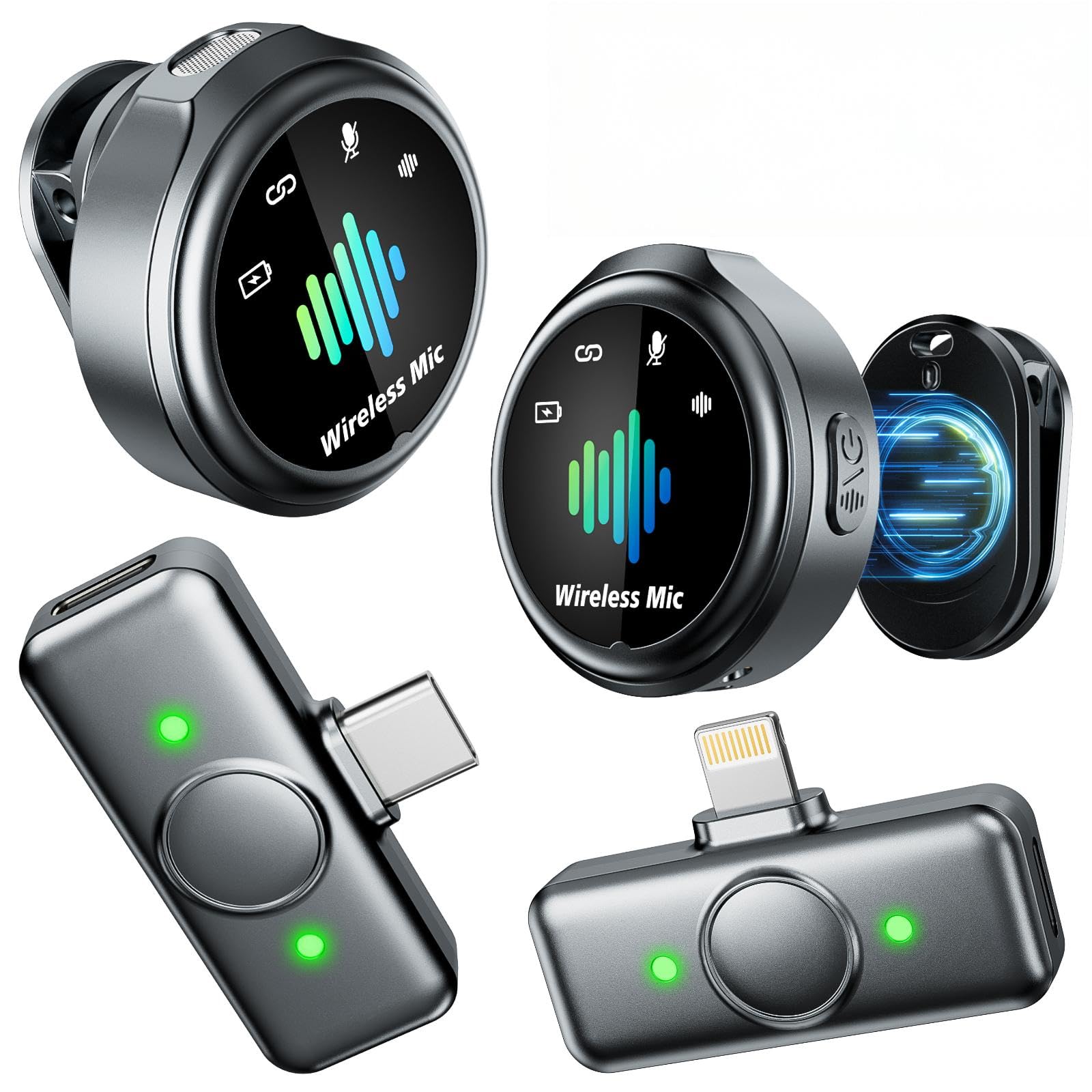 Mini Microphone for iPhone: Wireless Lavalier Microphone for Android - Noise Canceling Magnetic Clip Lapel Mic - Vlogging Recording & Pro Video for Content Creators - Black Gray