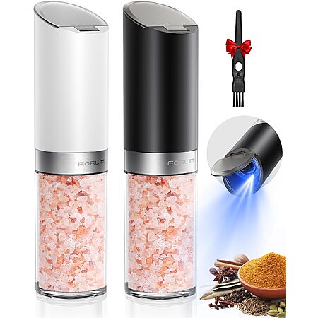 Forlim Gravity Electric Salt & Pepper Grinder Set w/ Dust Cover (White & Black) $5.99 + Free Shipping w/ Prime or on $35+