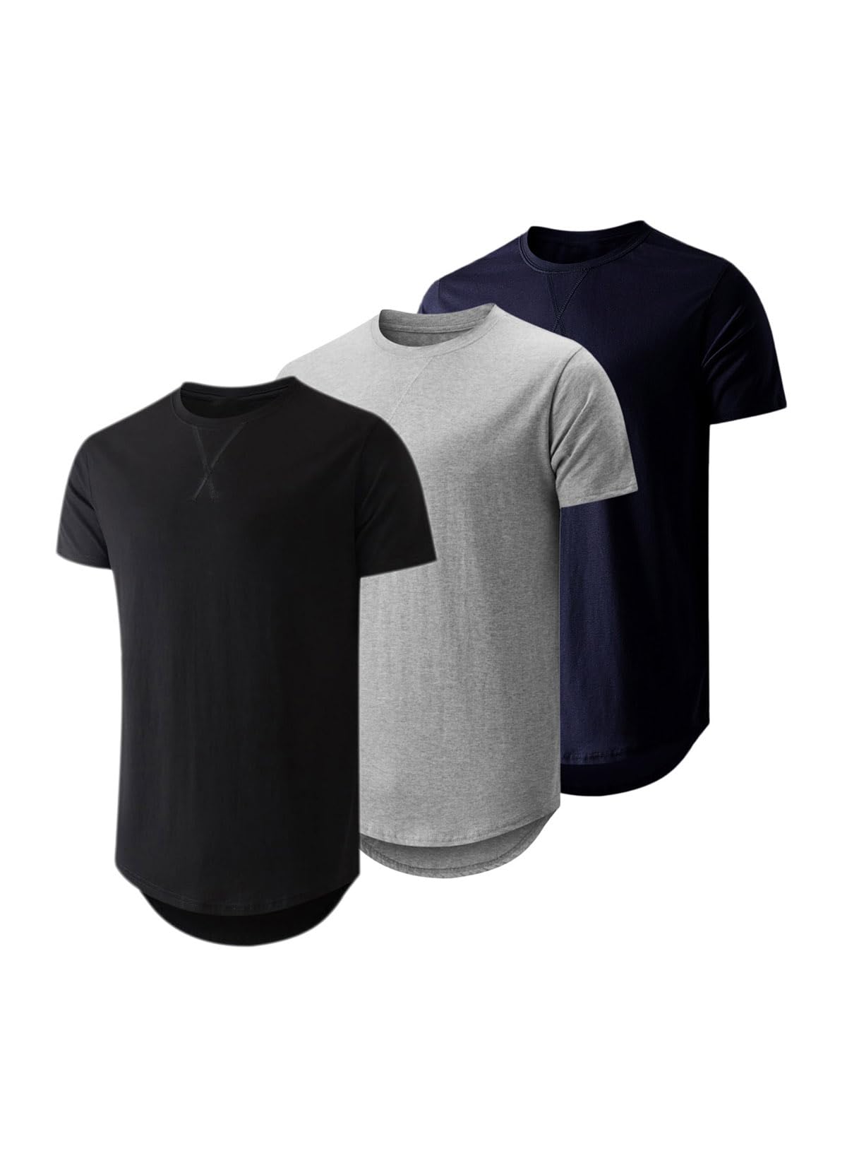 JMIERR Mens 3 Pack Cotton Hipster Hip Hop Longline Crewneck T-Shirt