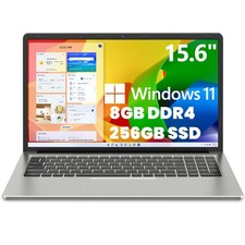 15.6" Windows 11 Laptop Intel Core N4000 8GB 256GB SSD HDMI USB-C WiFi Notebook
