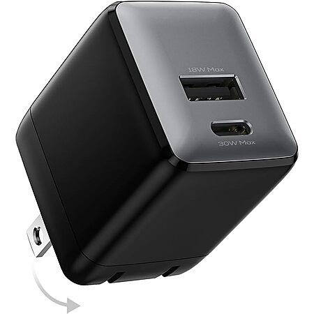 wegear USB C Fast Charging Charger, 30W Dual-Port GaN Nano Charger with Foldable Plug for iPhone 16/15 Series, iPad, Galaxy S24 Ultra and More Series, (Black, 1 Pack) $8.99