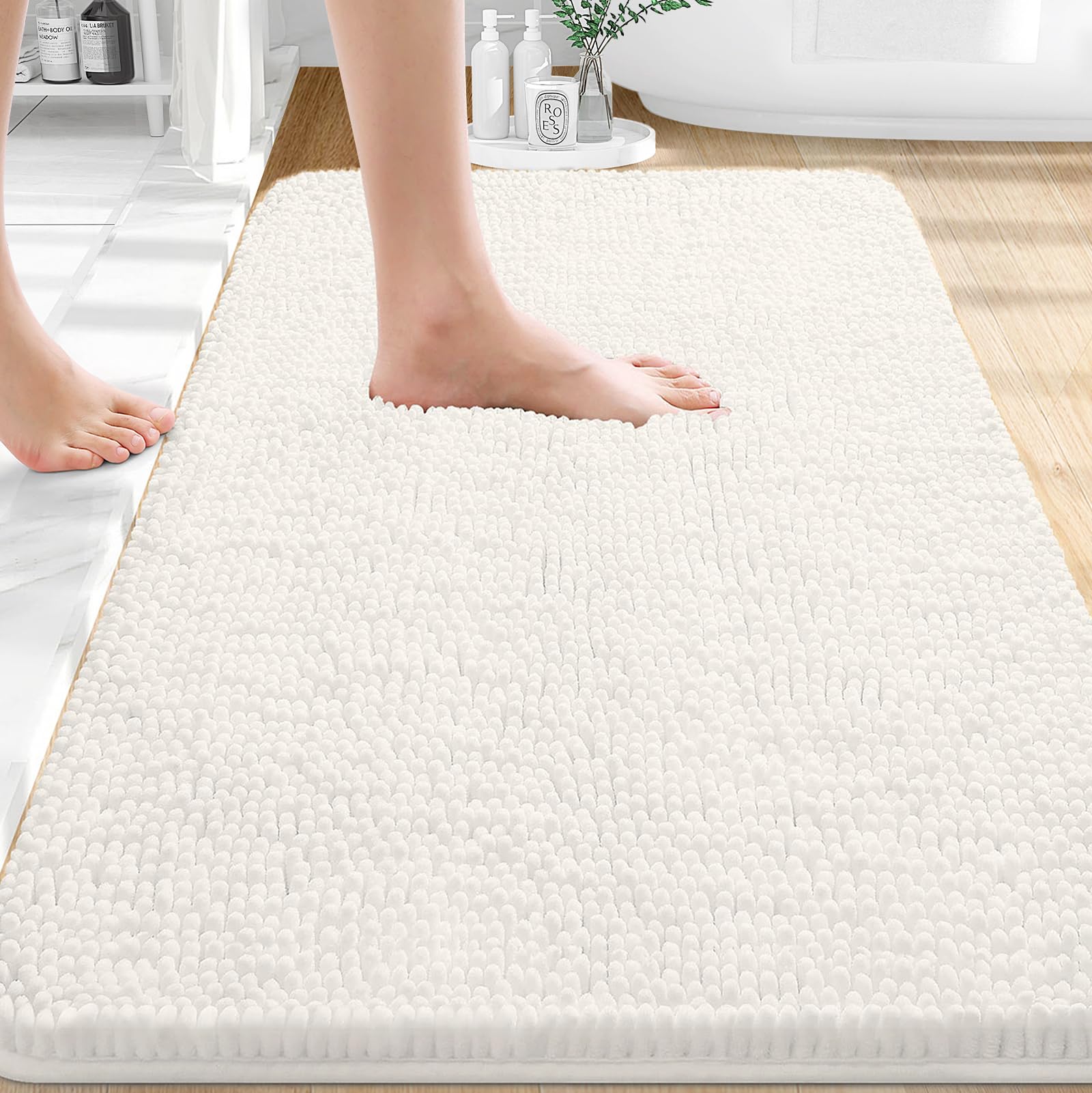 OLANLY Bathroom Rugs 36x24, Extra Soft Absorbent Chenille Bath Rugs, Rubber Backing Quick Dry, Machine Washable Bath Mats for Bathroom Floor, Tub and Shower, Home Decor Accessories, Ivory