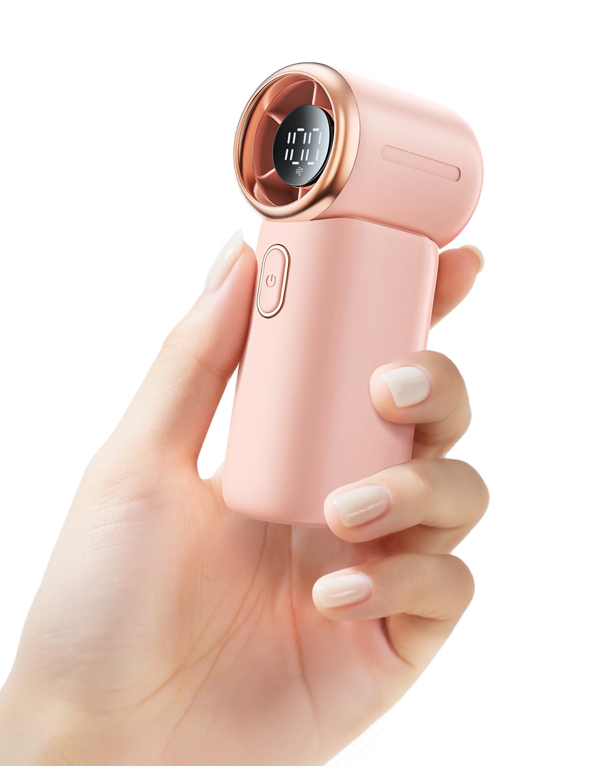 SWEETFULL Handheld Turbo Fan, 100-Speed Mini Fan with Digital Display, 12H Rechargeable Cooling, Portable for Travel & Outdoor Pink