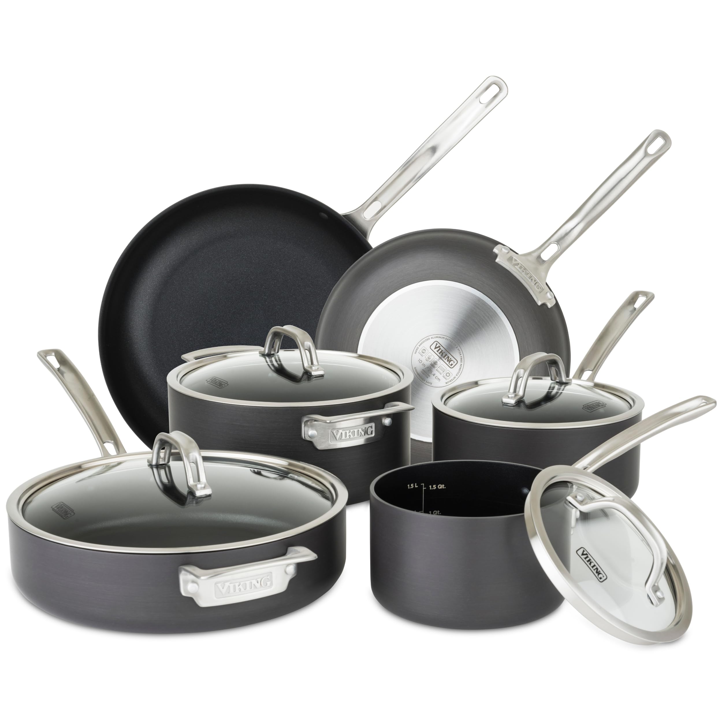 Viking Pots and Pans Set Non Stick, 10 Piece Hard Anodized Kitchen Cookware with Glass Lids, Black