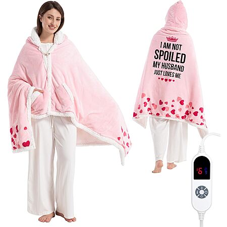 Faykoncen Valentines Day Wearable Heated Sherpa Hoodie Blanket w/ Pockets $14.99 + Free Shipping w/ Prime or on $35+