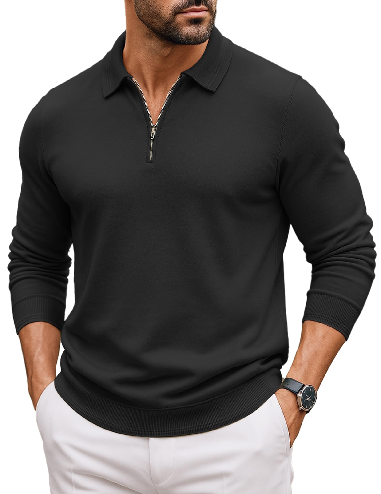 COOFANDY Mens Quarter Zip Polo Sweater Long Sleeve Knit Polo Shirts Casual Lightweight Dress Pullover