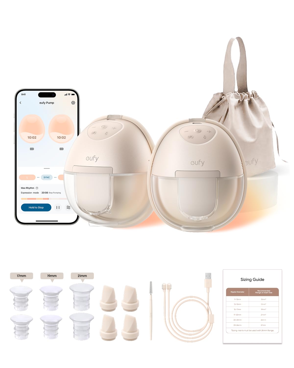 eufy Security Heated Breast Pump S1, Hands-Free Breast Pump with Industry-Leading HeatFlow Tech, App-Controlled OptiRhythm, Hospital-Grade Suction, Leakproof, Slim and Ultra-Quiet for in-Bra Use